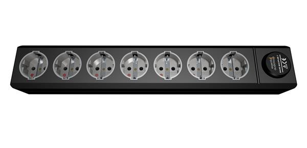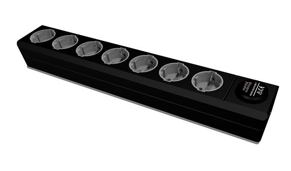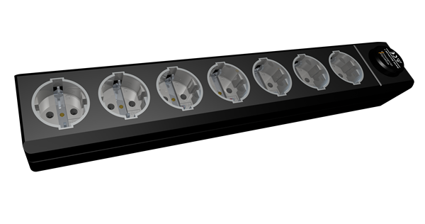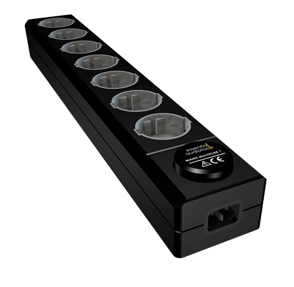 Der Netzmultiplikator 7 (Mains Multiplier 7 MM-7) von Essential Audio Tools ist keine gewöhnliche Mehrfachsteckdose, sondern eher ein Kunstwerk, das mit Hilfe einer CNC-Maschine hergestellt wurde, die diese Form aus einem Stück Kunststoff fräst. Ja... aus Kunststoff! Die Ergebnisse sprechen für sich, sowohl optisch als auch elektrisch. Mehr Anpressdruck und eine optimale Kontaktfläche erzeugen einen niedrigen Widerstandswert, was für eine gute Energieverteilung sehr wichtig ist. Die Verdrahtung von Phase, Nullleiter und Erde erfolgt nach dem Sternprinzip. Jeder Ausgang hat eine eigene Verdrahtung zum Eingangsstecker. Stromspitzen oder Störsignale, die an den Massekontakten der einen Buchse auftreten, wirken sich nun weniger auf die anderen Buchsen aus. Direkt hinter dem IEC-Eingangsstecker ist ein Pulse Protector integriert. Dieser verhindert, dass Spitzen und Impulse Ihre Geräte erreichen. Mehr Anpressdruck und eine optimale Kontaktfläche erzeugen einen niedrigen Widerstandswert, der für eine gute Stromverteilung sehr wichtig ist. Zwei Ausgänge sind mit internen Hochfrequenzfiltern ausgestattet, die zu einem natürlichen Klang und einem detaillierten Bild beitragen.