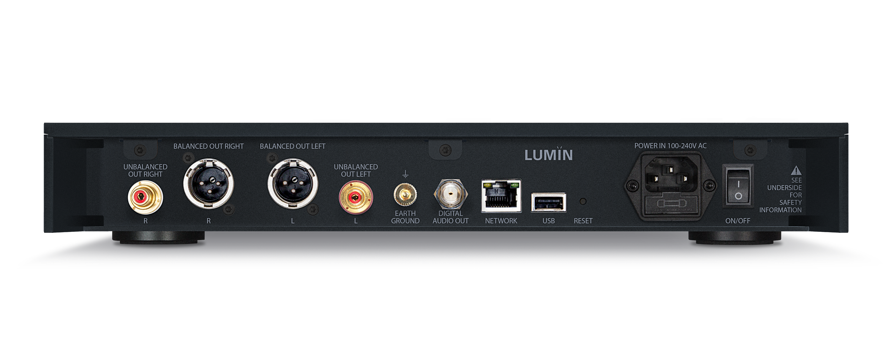 - Analoge Ausgänge: XLR (symmetrisch) und RCA (unsymmetrisch) für vielseitige Integration in Hi-Fi-Systeme.