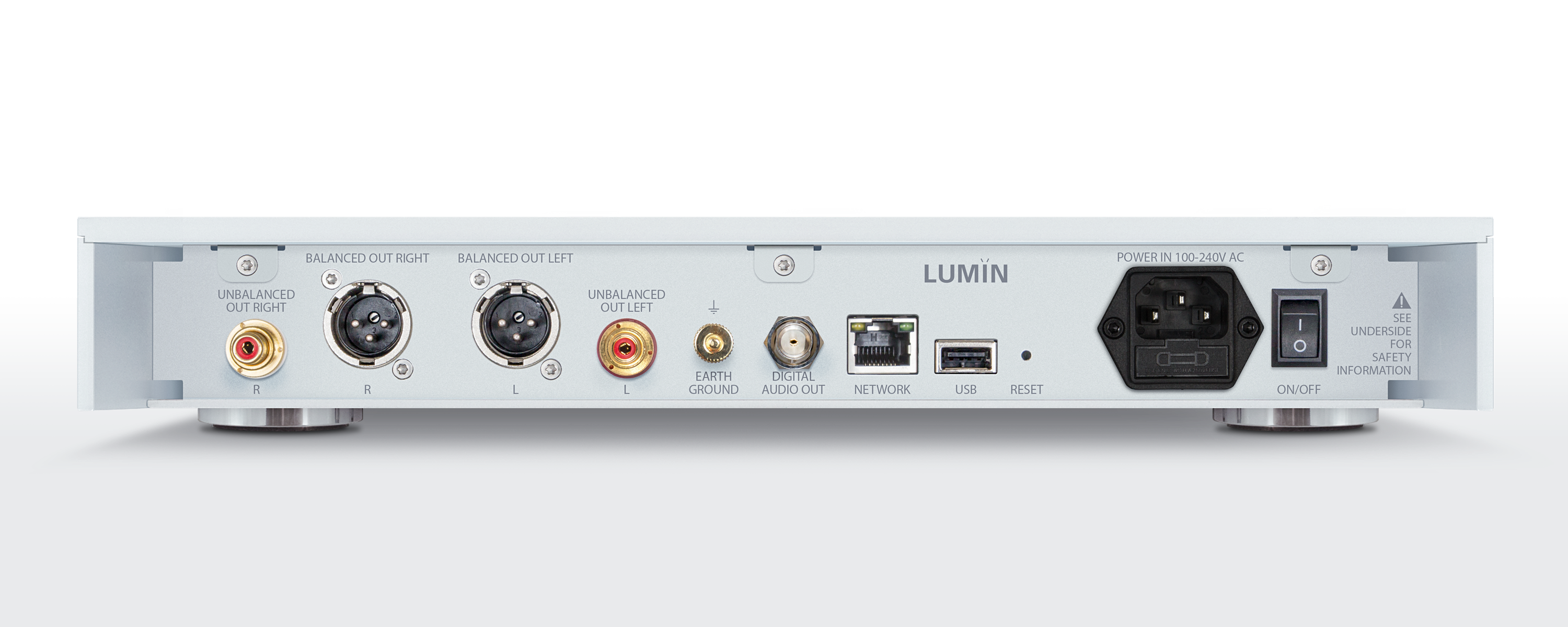 - Analoge Ausgänge: XLR (symmetrisch) und RCA (unsymmetrisch) für vielseitige Integration in Hi-Fi-Systeme.
