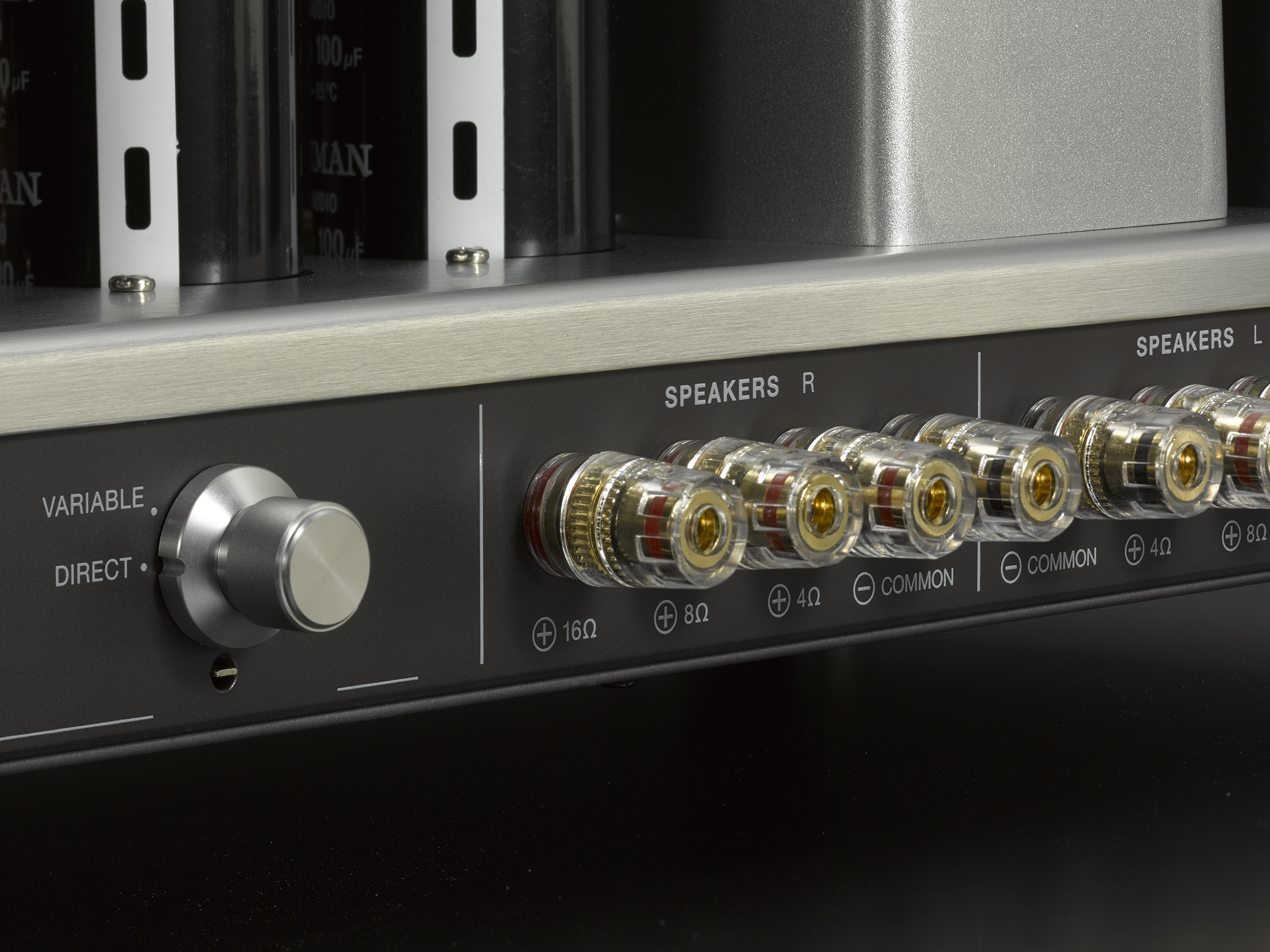 Der MQ-88uC bietet unabhängige 4, 8 und 16 Ohm Lautsprecheranschlüsse, und ist somit in höchstem Maße flexibel bei der Wahl der passenden Lautsprecher. Außerdem verfügt sie über einen variablen Eingang, bei dem das Signal den Eingangsbereich umgeht und eine Signalquelle, wie beispielsweise einen CD-Player, direkt mit der Ausgangsstufe verbindet.