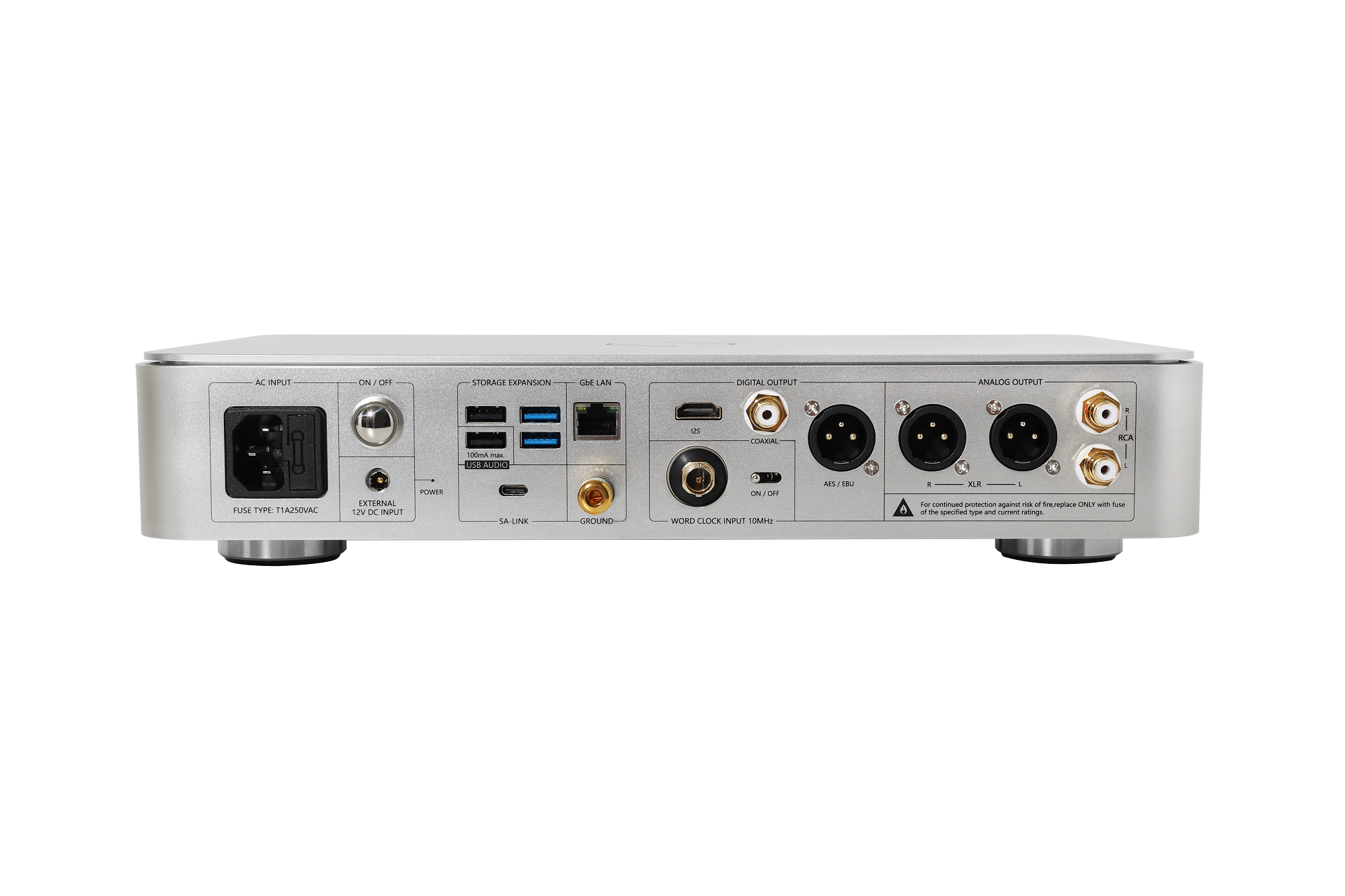 Ausgestattet mit AES/EBU, I2S, koaxial, USB Audio für digitales Audio; Symmetrische XLR-Ausgänge, unsymmetrische Cinch-Ausgänge und 6,35 mm Kopfhörerbuchse für analoges Audio. Alles optimiert für das stressfreie Musik-Streaming. Die 1000Mbit's Ethernet Schnittstelle funktioniert sehr gut in Verbindung mit einer NAS (Network Attached Storage) und Hochgeschwindigkeits-Netzwerk-Streaming-Anwendungen.