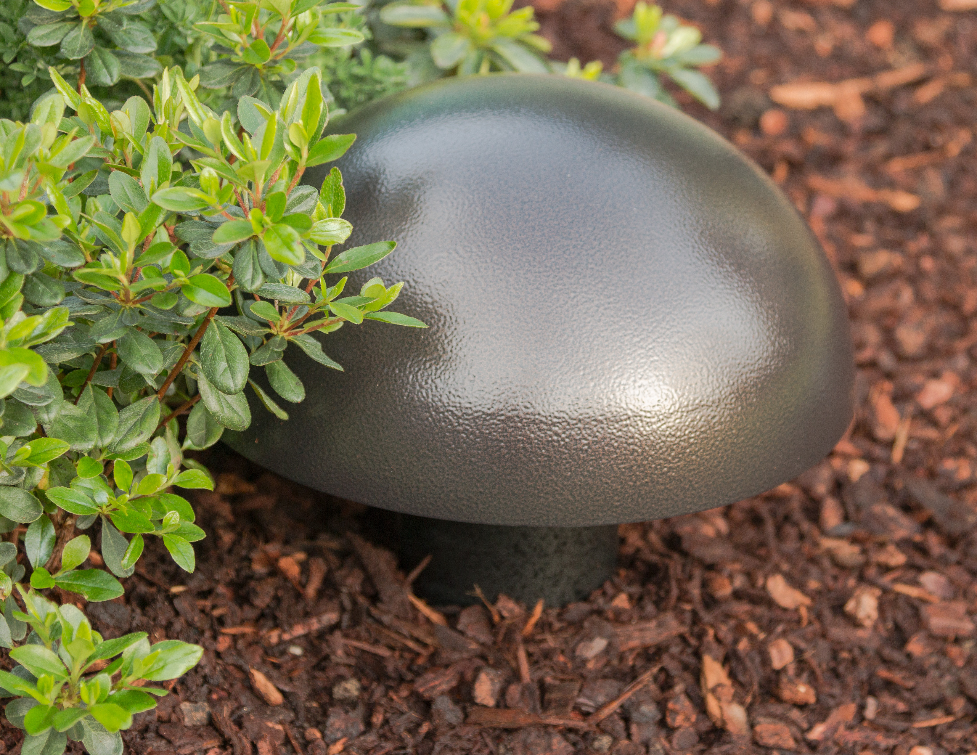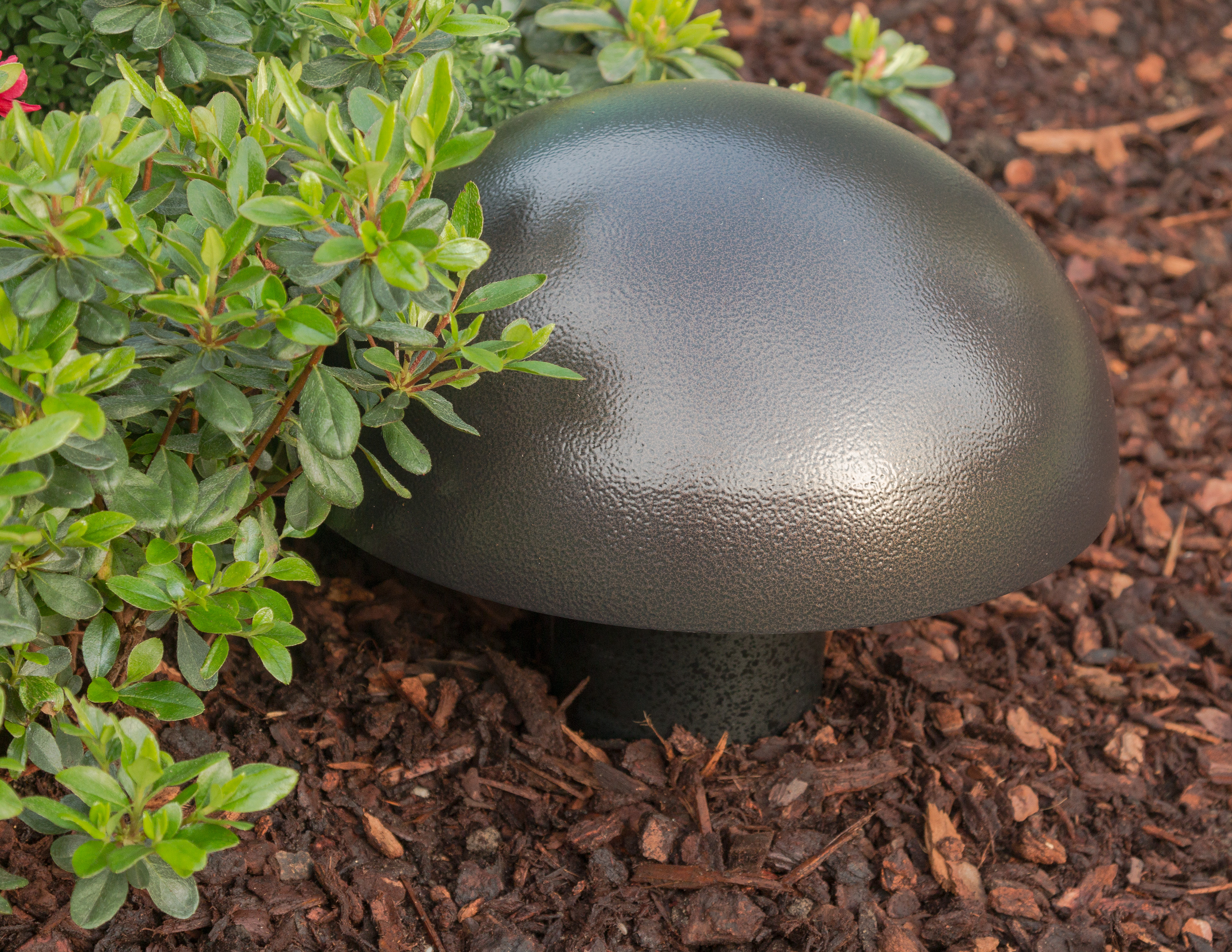 Ein verrottungsfreier Kunststoff-Korpus lässt nur das Rohr-Ende aus dem Boden schauen. Getarnt